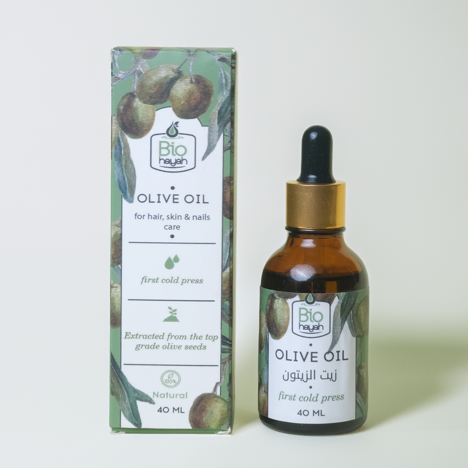 Experience natural beauty care with Biohayah Extra Virgin Olive Oil, a 100% pure, cold-pressed oil crafted for cosmetic use. This nutrient-rich oil has been used for centuries as a beauty secret, packed with antioxidants and vitamins that support skin, hair, and overall body wellness. For Skin: Provides deep hydration, reduces dryness, and helps maintain youthful, radiant skin. For Hair: Restores strength, shine, and softness while protecting against damage. For Body: Perfect for daily moisturizing or as a natural massage oil. For Nails & Cuticles: Nourishes and strengthens for healthy, well-groomed hands. Compact 40 ml size – convenient for daily beauty routines at home or while traveling.