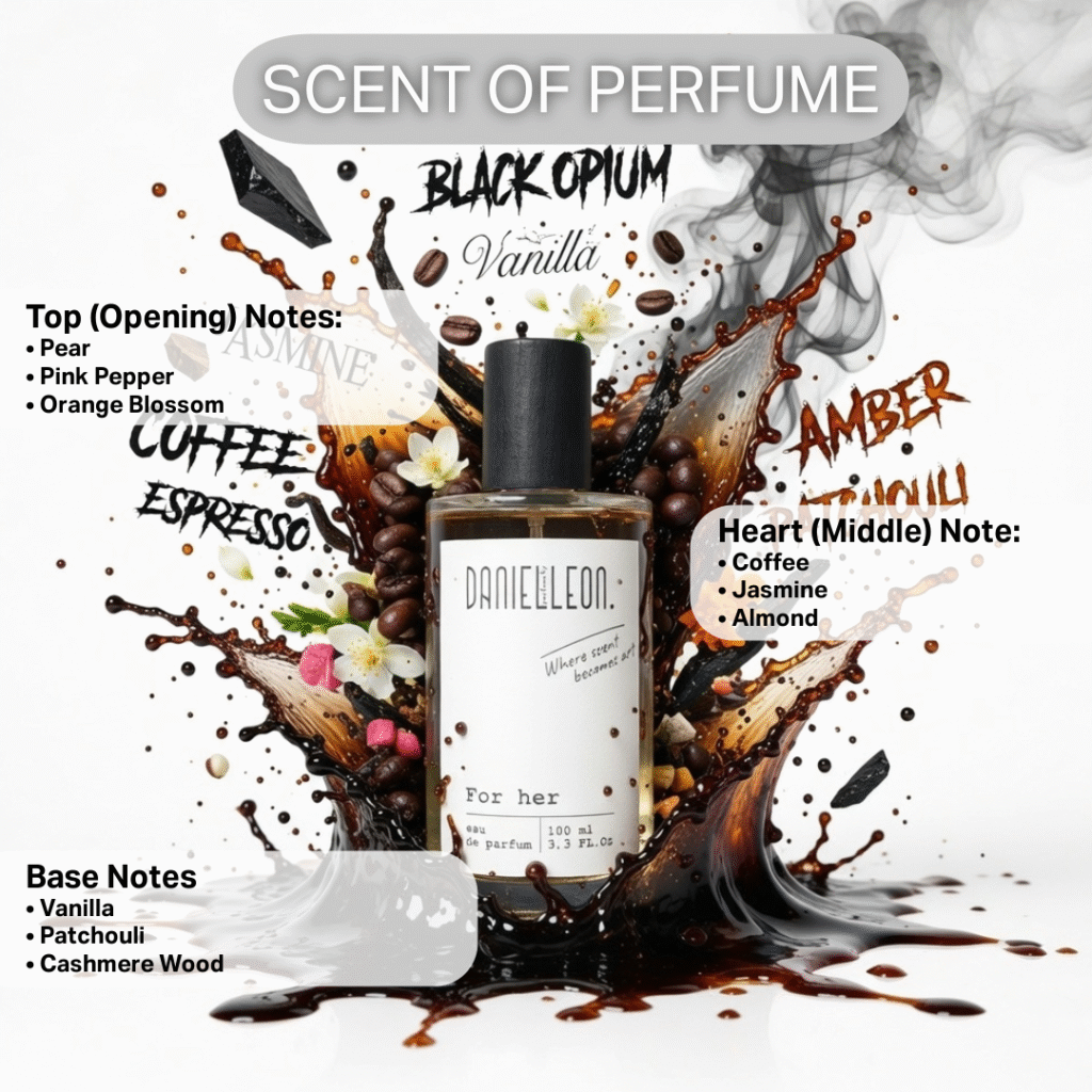 Unleash your inner confidence with Daniel Leon – DL-F03, a bold and captivating Eau de Parfum inspired by the iconic Black Opium. This sensual fragrance opens with rich notes of coffee and vanilla, blended with jasmine, pear, and a hint of musk — creating a warm, addictive scent that perfectly captures mystery, allure, and feminine strength. Perfect for nights out, special moments, or whenever you want to feel powerful and unforgettable. And if you love it (we’re sure you will 💋), please leave us a kind review — your feedback inspires us to keep creating fragrances that make you feel amazing.
