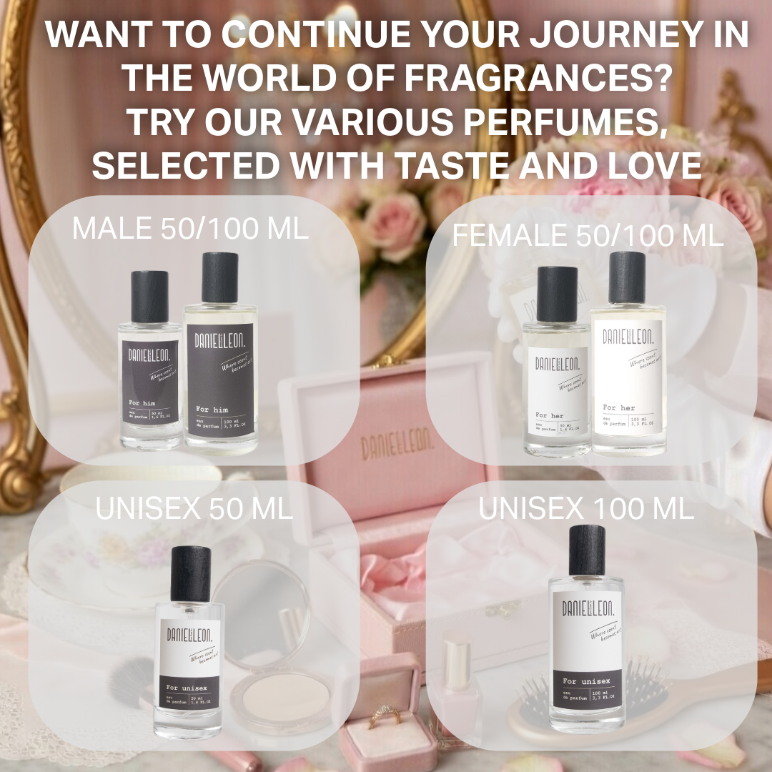 Feel the charm of pure elegance with Daniel Leon – DL-F07, a romantic Perfume This luxurious scent combines delicate notes of rose, peony, and soft musk, wrapped in a sweet touch of vanilla and patchouli, to create a fragrance that’s both timeless and irresistibly feminine. Perfect for women who love to express their grace and confidence with a touch of sophistication. And if you fall in love with it (we think you will 💕), please take a moment to leave us a kind review — your support means the world and helps us craft even more scents made with love.