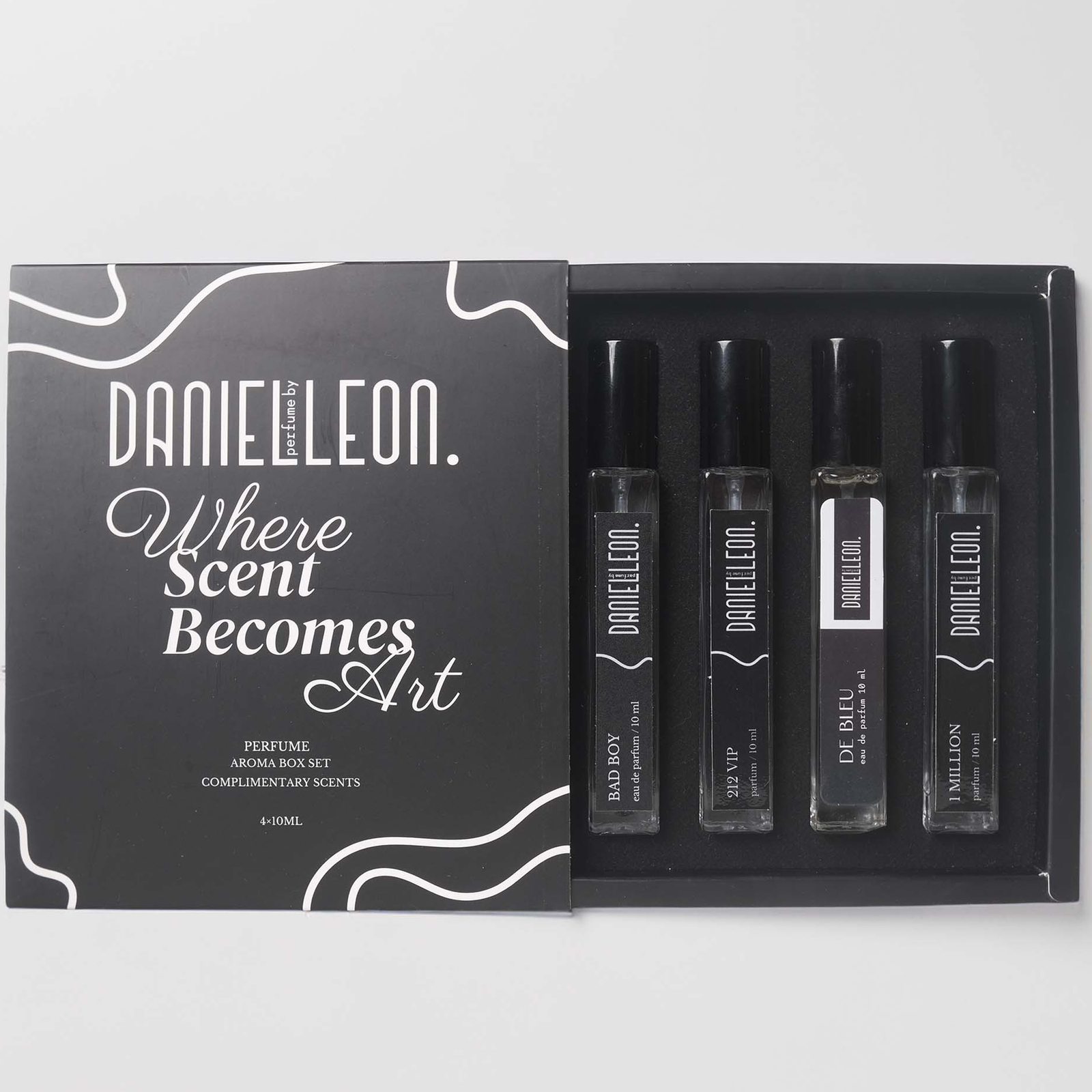Daniel Leon Men’s Perfume Gift Set is designed for men who want to explore multiple inspired fragrances in one convenient package. This set includes 4 travel-size spray bottles (10ml each), perfect for everyday use, work, travel, or gifting. Inspired by well-known men’s fragrances, each scent offers a distinctive masculine character with reliable longevity. With approximately 120–150 sprays per bottle, this gift set delivers great value and flexibility for those still discovering their signature scent. Inspired by: 1 Million – 212 VIP – Bad Boy – Bleu de Blue