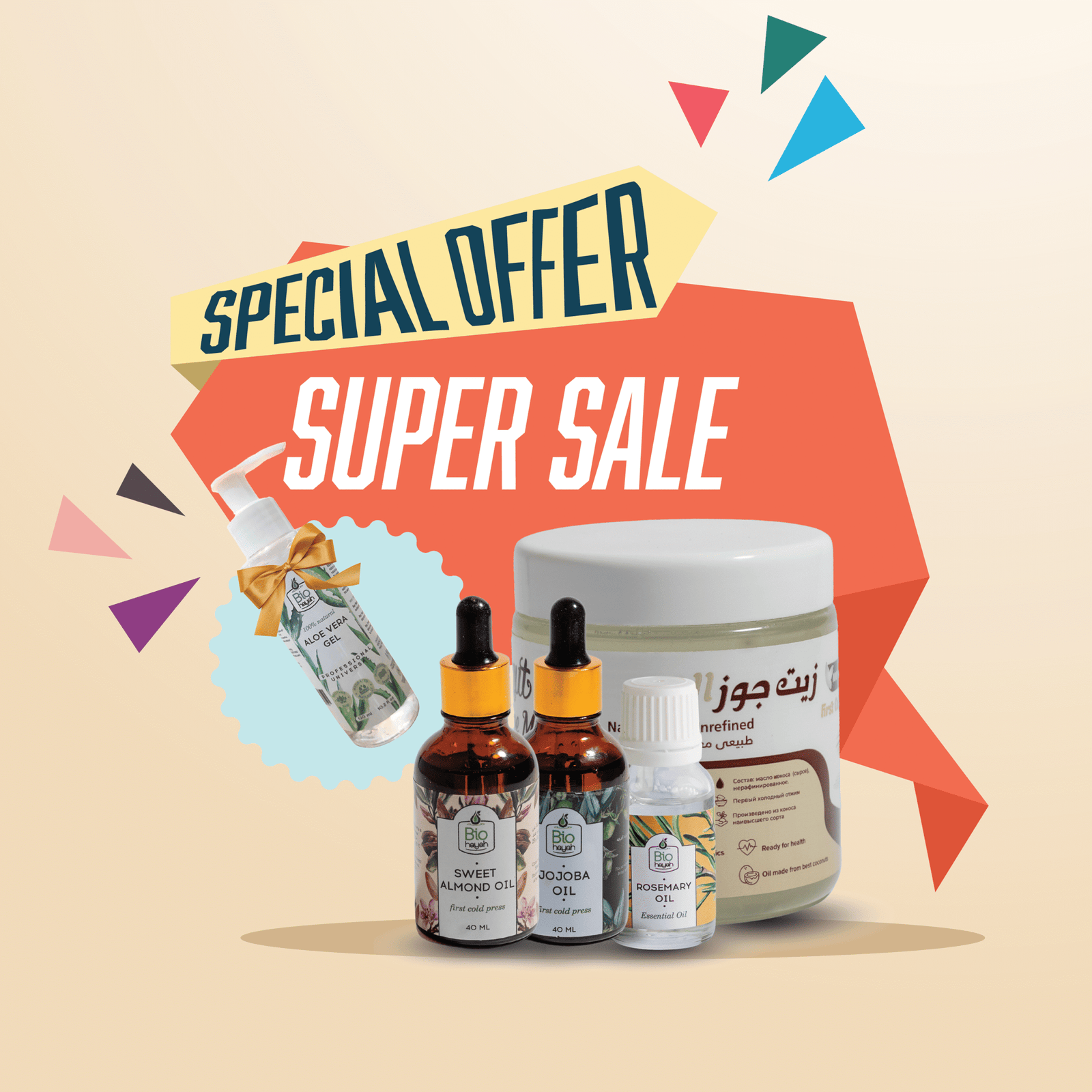 حزمة الزيوت التجميلية الكاملة هي الحل المثالي لجميع احتياجات العناية بالبشرة والشعر، حيث تقدم لك أفضل العلاجات الطبيعية التي تمنحك بشرة مشرقة وشعرًا صحيًا.